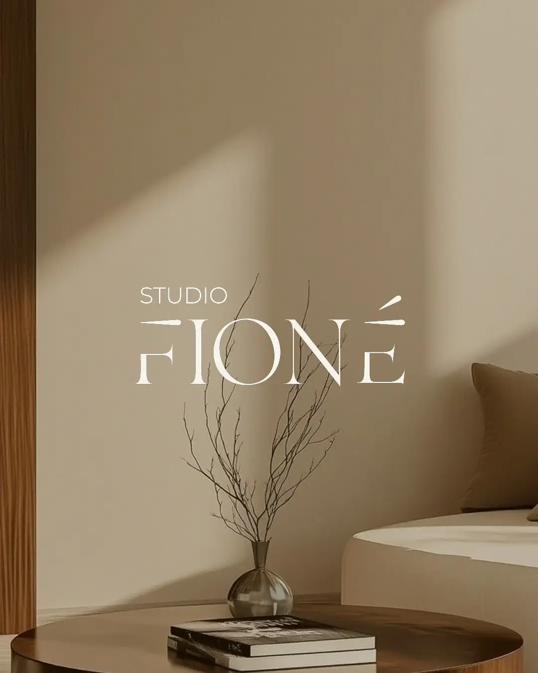 Net zoals een goed ontworpen interieur ruimte laat om te leven, straalt de open structuur van het logo rust en samenhang uit. De losse horizontale streepjes van de F en É zijn bewust losgelaten; ze tonen hoe Studio Fioné flexibel inspeelt op de wensen van de klant, zonder haar eigen stijlvolle signatuur te verliezen.